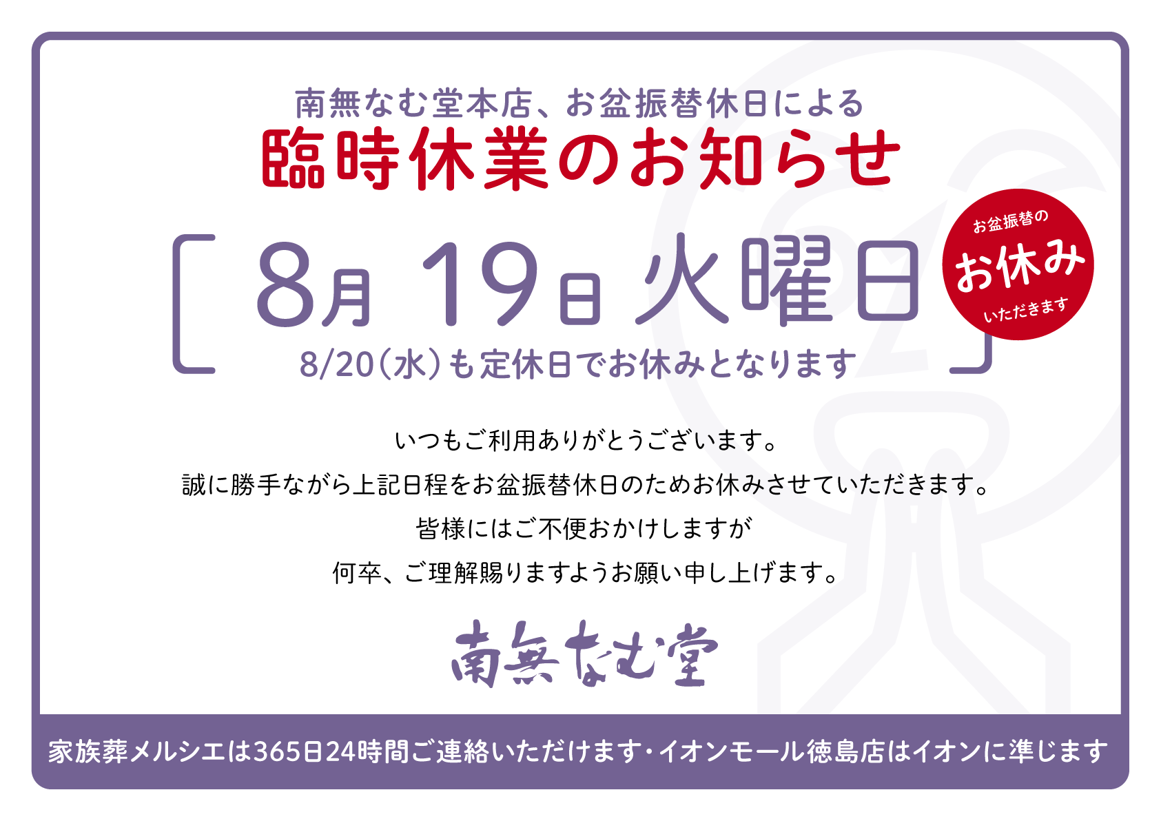 Rinji_0819yasumi | 徳島市のお墓・霊園・永代供養は南無なむ堂